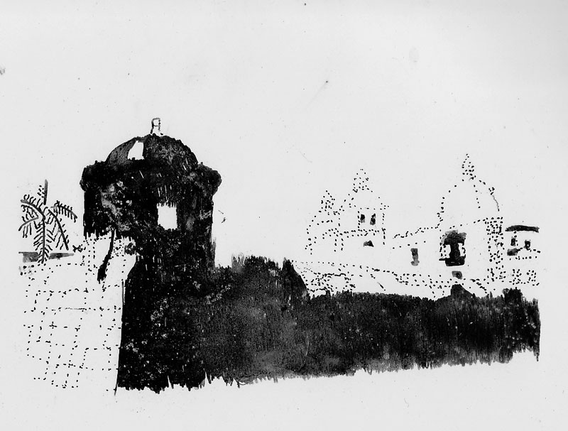 Dibujo hecho con pluma y bastoncillo por Moira Huntly, extraido del libro "Cuadernos para dibujar - Pincel y tinta" de Moira Huntly, de Editorial Parramón.